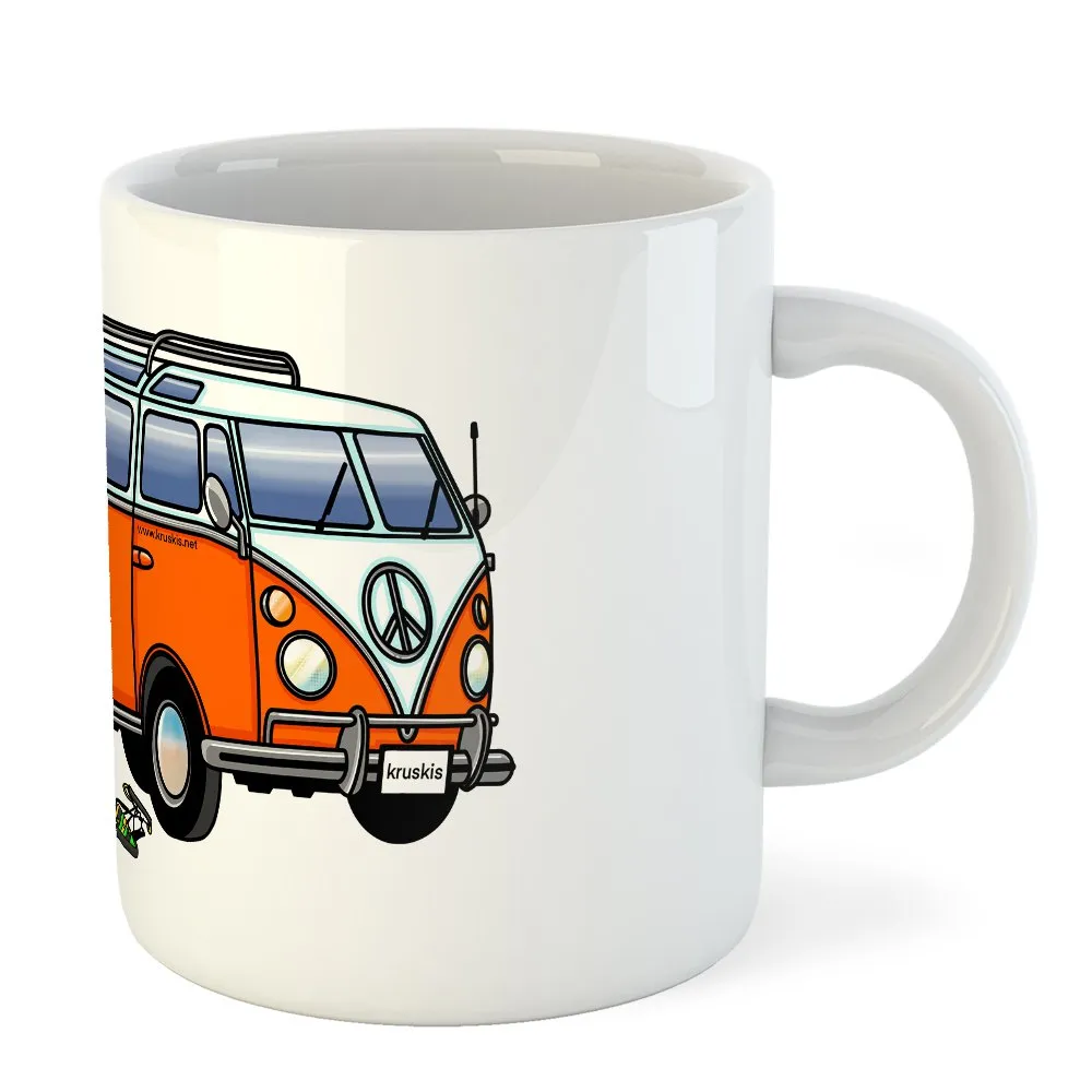 White ceramic mug with an unique and fun design.