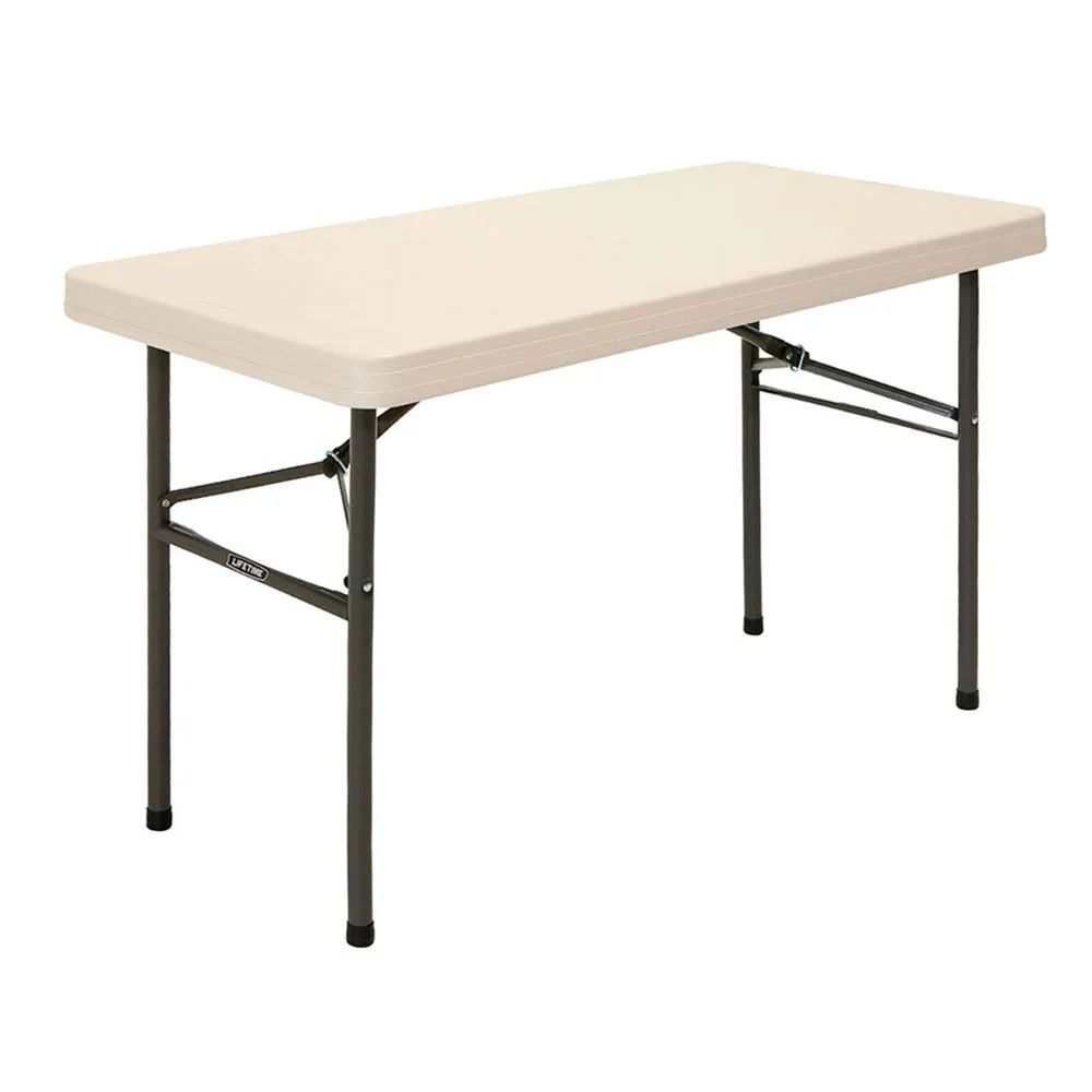 Ultra-resistant LIFETIME folding table with high-density polyethylene top and sturdy structure in steel coated with an anti-rust powder finish.