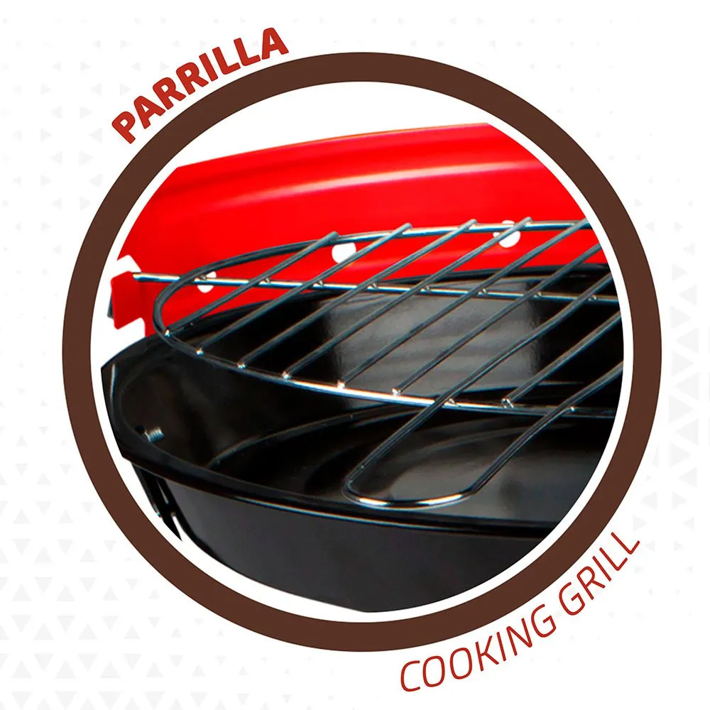 Includes grid with 33 cm diameter handle and protective windbreaker with holes to place the grid more or less close to the embers.