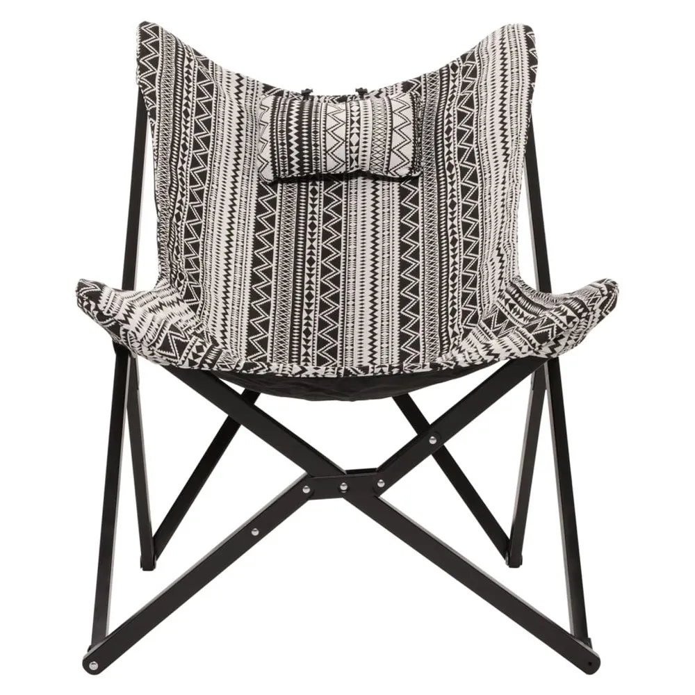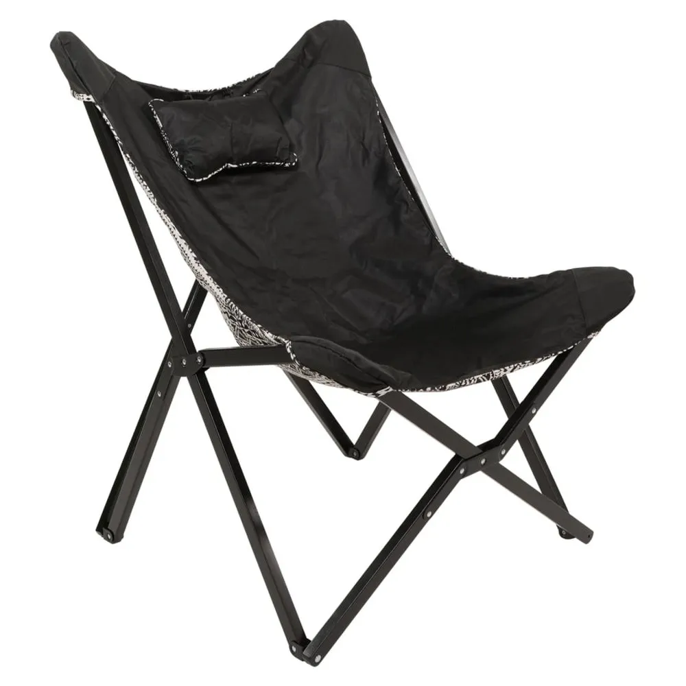 This highly comfortable black and white Lesli Living Aztec butterfly chair has a durable beech wood frame and a snug poly-cotton seat top. It is an excellent option for a day in the outdoors. With a maximum load capacity of up to 110 kg you can just sit down, relax and enjoy the view. The chair opens and folds in seconds, no assembly is required. Furthermore, this camping chair is lightweight and easy to carry. Note : Do not leave the chair in the rain or drizzle with no cover. Colour: Black and white Upholstery material: Poly-cotton fabric Frame material: Beech wood Dimensions: 70 x 81,5 x 98 cm (W x D x H) Max. carry weight: 110 kg Easy to fold and unfold Ideal for camping Reversible top