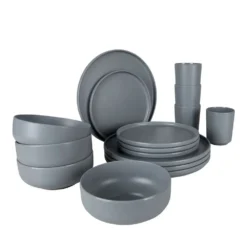 This trendy 16 piece light grey Patom tableware set from Bo-Camp is made of strong melamine, a plastic material that is practically unbreakable, scratch-resistant and lightweight. With its industrial design, the camping dinnerware set is a perfect combination of sturdy look with raised edge. It is perfect for taking along on picnics or camping trips. The stylish camping dinnerware set consists of four breakfast plates, four dinner plates, four bowls and four mugs suitable for a group of four people. The picnic tableware set is dishwasher safe. It can be used perfectly at home. Additionally, all Bo-Camp tableware sets are BPA free. Note : Not suitable for serving hot food and drinks to children between the ages of 0 and 3 years. Colour: Light grey Material: 100% melamine With raised rim Shatter-proof Scratch-resistant Dishwasher safe BPA free plastic Suitable for 4 people Food approved Industrial design Lightweight, yet sturdy 16-piece camping dinnerware set : 4 x 26 cm dinner plate 4 x 20 cm breakfast plate 4 x 700 ml 15 cm bowl 4 x 300 ml mug (8×10 cm)
