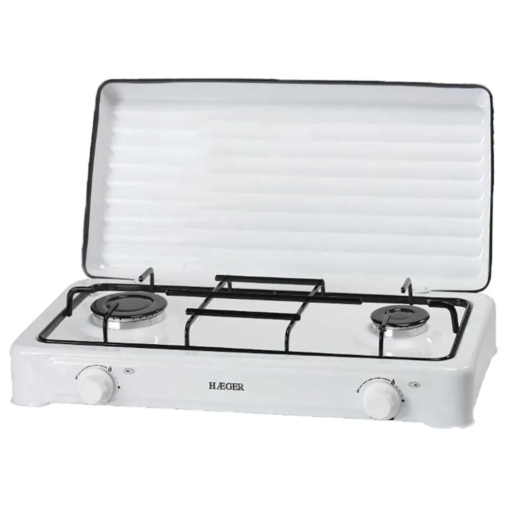 The Haeger double fire gas stove has 2 corrosion-resistant aluminium burners. Its lid and its coating are made of enamel for easy cleaning.