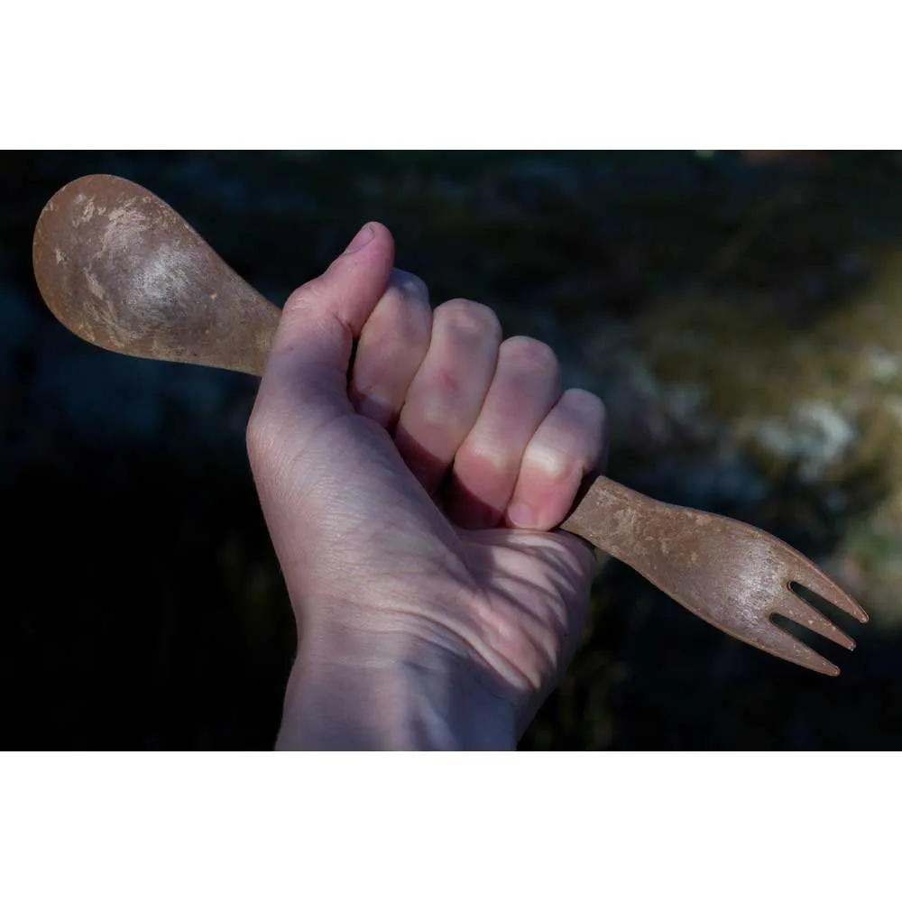 KUPILKA Spork 225 is lightweight yet durable. It gives that extra length that you need for the food pouches. The ecological Kupilka dishware can withstand boiling hot water and sub-zero temperatures as cold as -30°C. The dishes can be washed by hand in the wild or in the dishwasher back home. The products are manufactured from our own biomaterial using EKOenergy, and each item ages beautifully yet keeping its qualities. You can check how fresh the product is from its wooden scent – the stronger the scent, the newer the product! To ensure the longevity of the dishes, we do not recommend putting them in the microwave, stove or open fire. At the end of their life span, the products can be recycled, incinerated for heat energy or returned to the manufacturer for re-use. The Kupilka packaging is made from recycled cardboard.