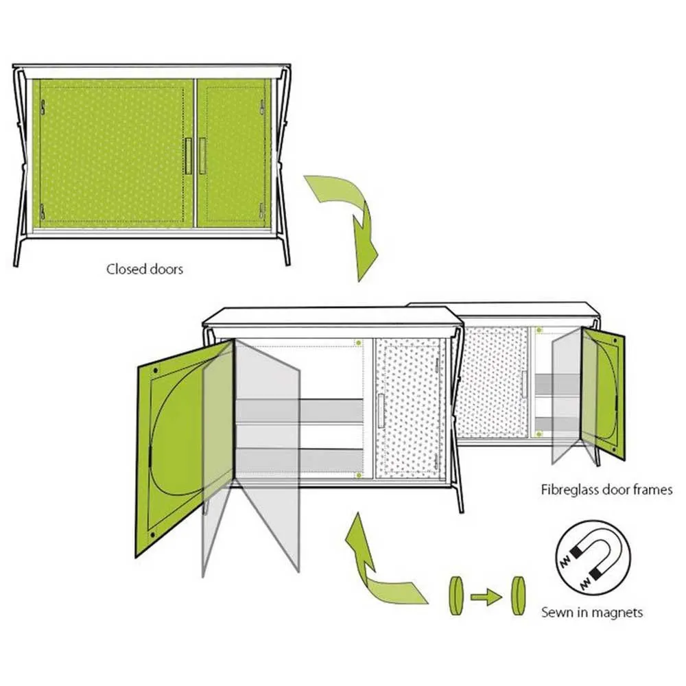 – Zipped in mesh door to prevent any bugs to enter the cabinet