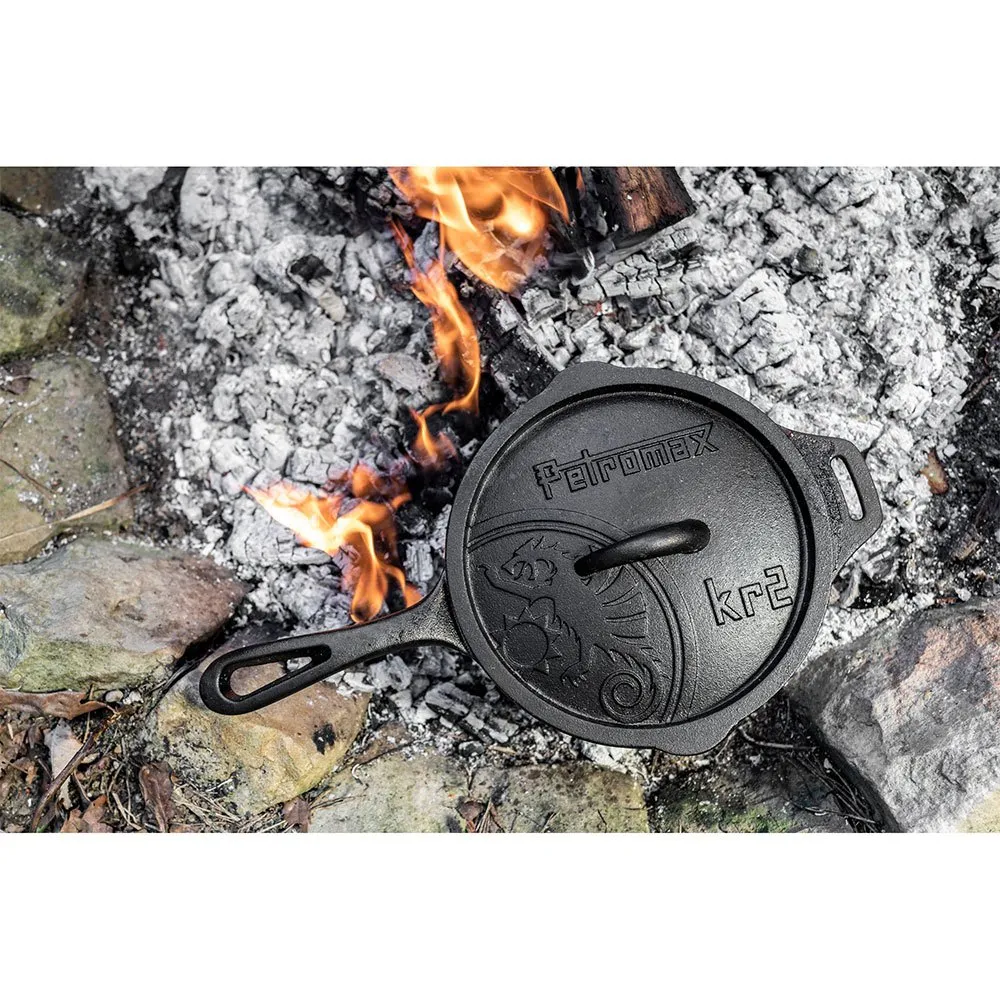 The cast-iron Saucepan is a pot with a plane bottom surface and handle that eases use over open fire or on a stove, in particular.