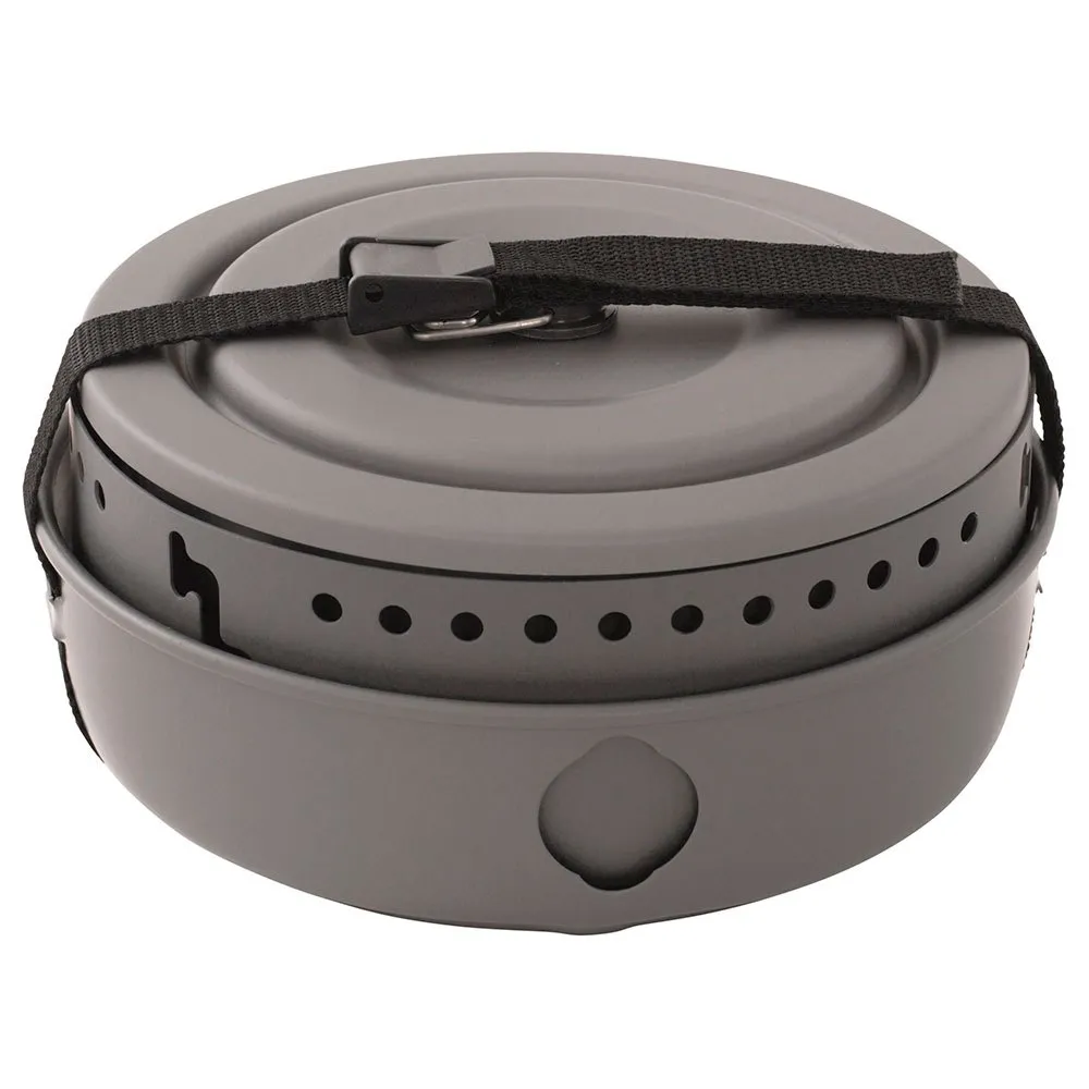 Lightweight and tough, it is made from hard anodised aluminium and comes with a non-stick pan, two non-stick pots and a lid.